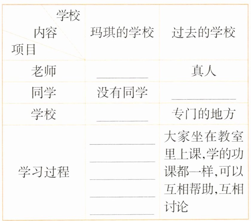 课文运用了______的手法,写出了玛琪的学校和过去的学校有很大的不同,从中可以看出玛琪更喜欢______。