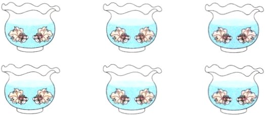 (1)每个鱼缸里有2条鱼,6个鱼缸一共有( )条鱼。