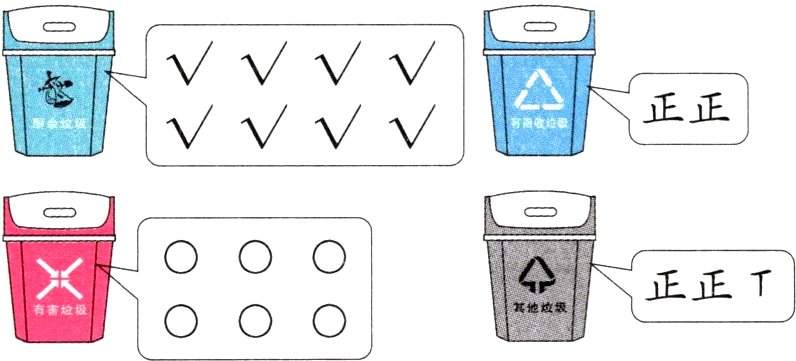 (3)如果小区要新配置一批垃圾桶,应该多买一些( )垃圾桶和( )垃圾桶。