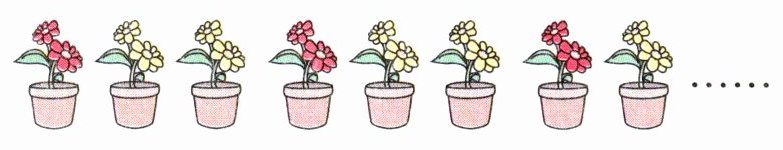 3. 实验小学举行百年校庆,要在舞台前摆放一些花。这些花是按照红、黄、黄的顺序排列的,每3盆一组,第22盆是什么颜色的花?