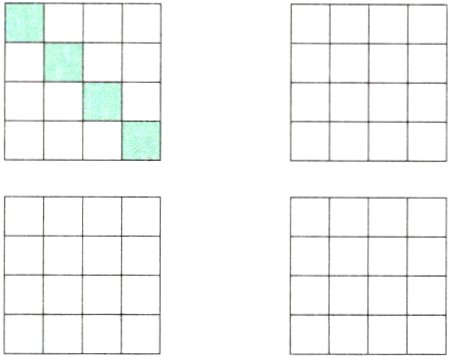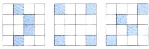 2照样子,从下面的方格里选4格涂色,使它们构成一个轴对称图形。