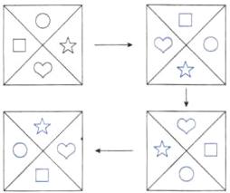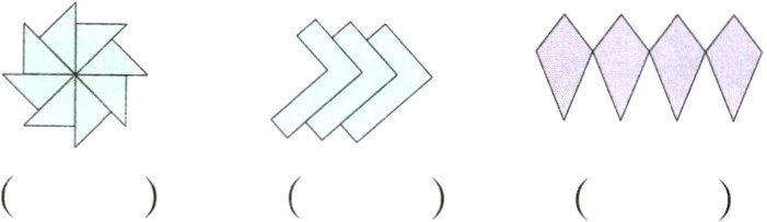 1下面的图案中,哪些可以通过平移得到?画“○”。哪些可以通过旋转得到?画“△”。