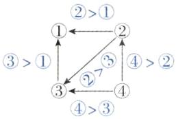 “→”表示大于,如②→①表示②>①