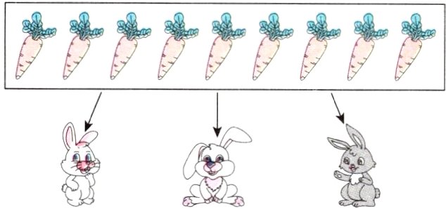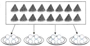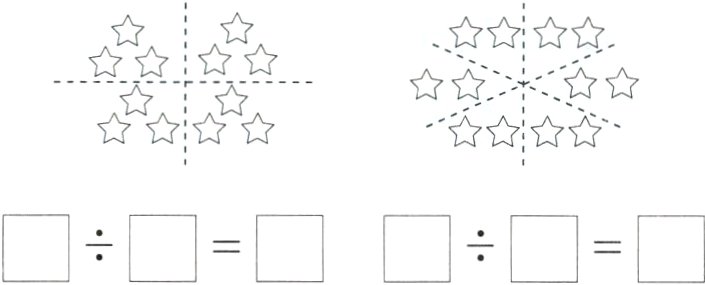 3. 先分一分,然后写出除法算式。(用〇表示)
