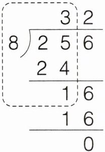 2 把 256 个乒乓球装进盒里,每盒装 8 个。要装多少盒?彤彤列竖式计算,竖式中虚线框出的部分表示( )