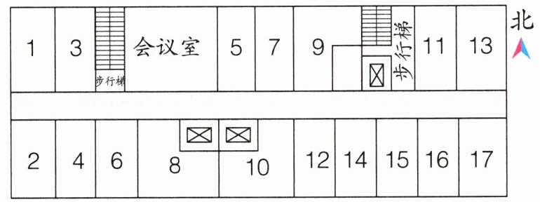 (1)1号房间以及会议室的人应走( )面的步行梯。