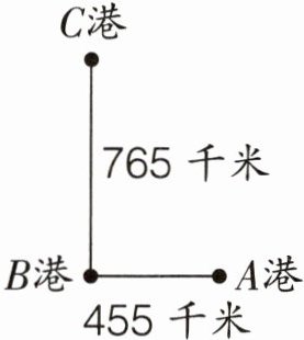 765 + 455 = 1220(千米) 36×34 = 1224(千米)