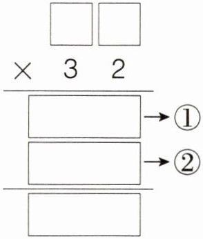 (1)右面是一道两位数乘32的题目,把第一次乘得的积记作①,把第二次乘得的积记作②,比较①和②,结果是( )
