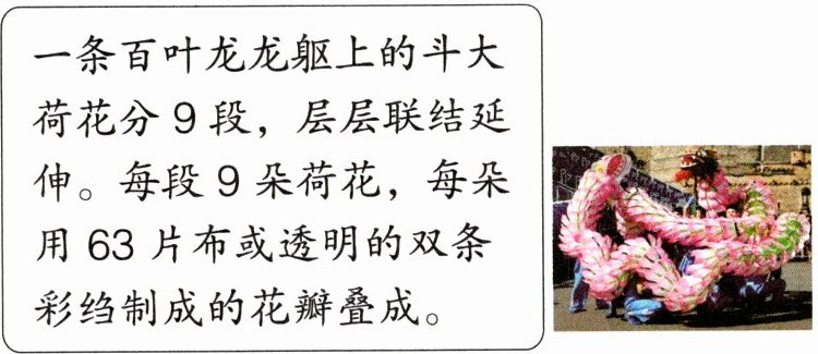 3 龙舞是浙江省长兴县传统舞蹈,是国家非物质文化遗产之一。一条百叶龙的龙躯共由多少片花瓣组成?