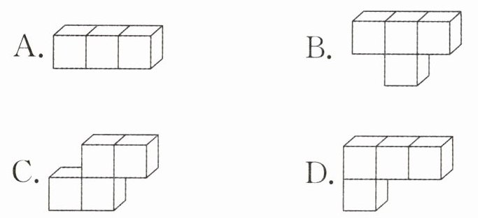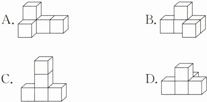 5. 图中的长方体是由三个部分拼接而成,每一部分都是由四个同样大小的小正方体组成。其中第三部分所对应的物体应是( )
