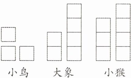 三只动物观察某建筑物(如图)。小鸟说:“这是我从空中看到的。”大象说:“我是从左面看的。”小猴说:“我是从前面看的。”这个建筑物有( )幢楼,分别有( )层、( )层、( )层。