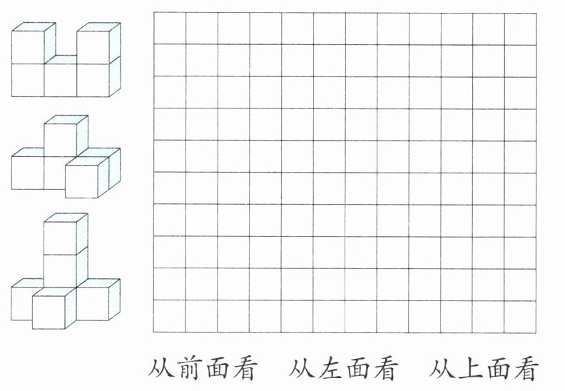 (3)移动方块( )和方块( ),并分别放到方块( )和方块( )的上面,从前面看到的图形是一个大正方形。