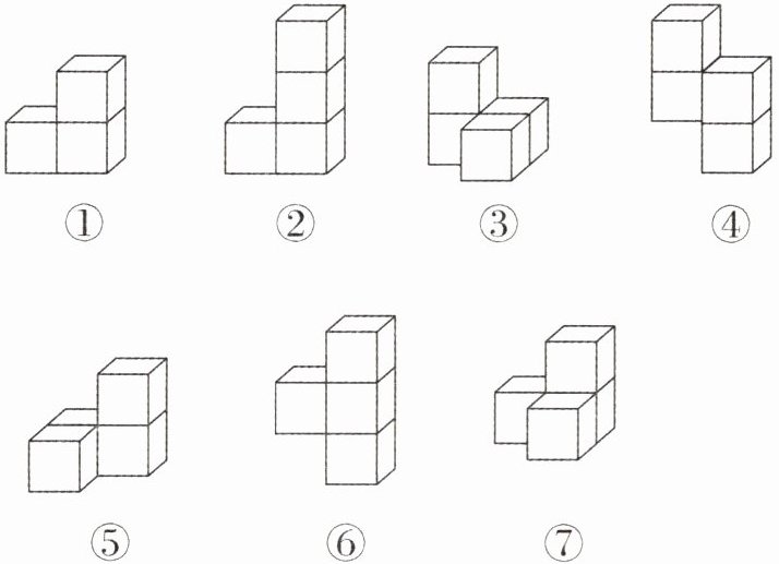 1. 索玛立方体是由丹麦人皮亚特·海恩发明的。它是由一些大小相同的小立方体粘成的七个立体图形,可以变化出许多有趣的拼法。索玛立方体又被称为“立体七巧板”。(填序号)