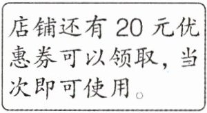 4. 某购物网站周年庆举办促销活动,每满398元减80元,部分网店还有优惠券可以领。妈妈选中了一件276元的外套和一条128元的围巾,请你算一算,下订单时应付多少钱?