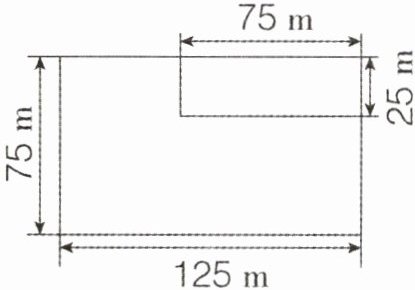 5陈大爷家有一块长方形的土地,他利用土地的一角打了一块$75\ m×25\ m$的地基准备建仓库(如图),这块土地还剩下多少平方米?