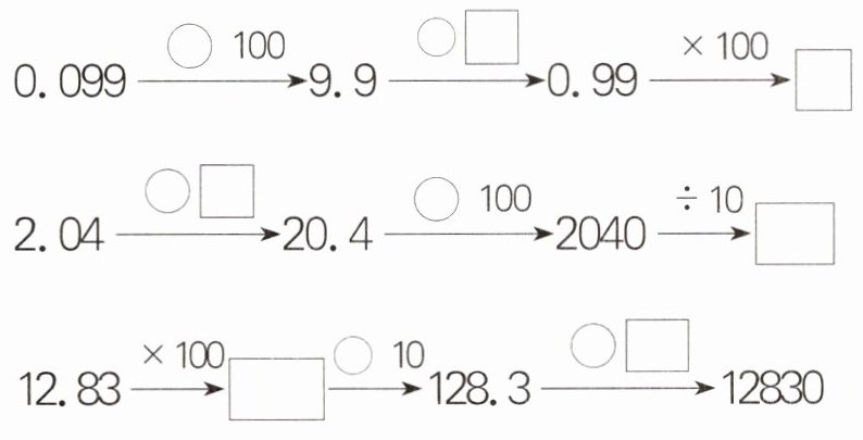 (2)一个数扩大到原来的1000倍后,又把小数点向左移动了一位,得到的数是3.4,这个数原来是( )。