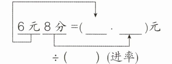 $6$元就是 6 元,8 分可以改写成( )元,合起来就是( )元。