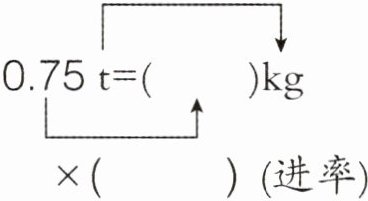 把高级单位的数改写成低级单位的数,要( )进率,只要把 0.75 的小数点向( )移动( )位。
