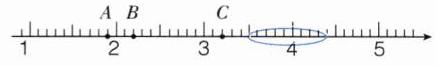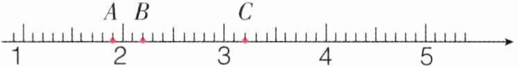 (1)直线上A、B、C三个点分别表示()、()、(),其中最接近2的点是()点。