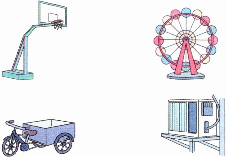1 篮球架上的三角形(如图)是应用了三角形的( )性。下列各物体中,有哪些地方也应用了这一特性? 照样子画一画。