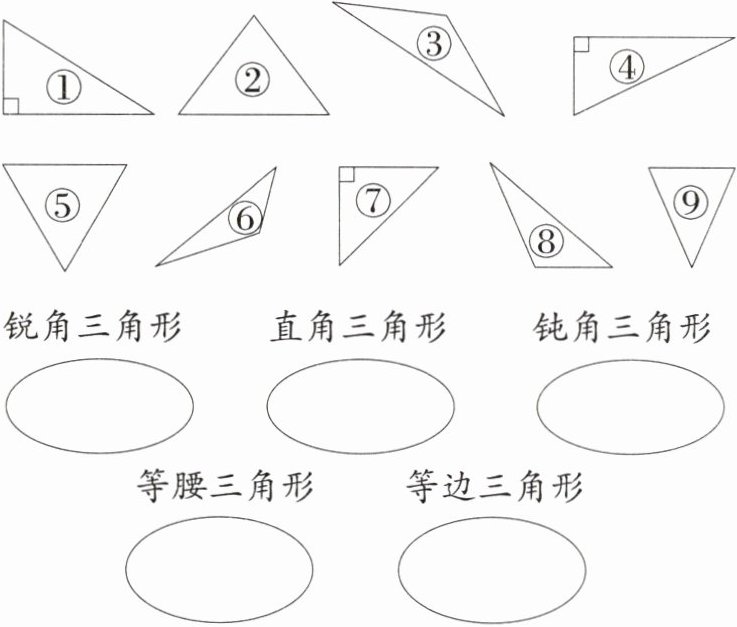 1 把下列三角形的序号填在相应的图里。