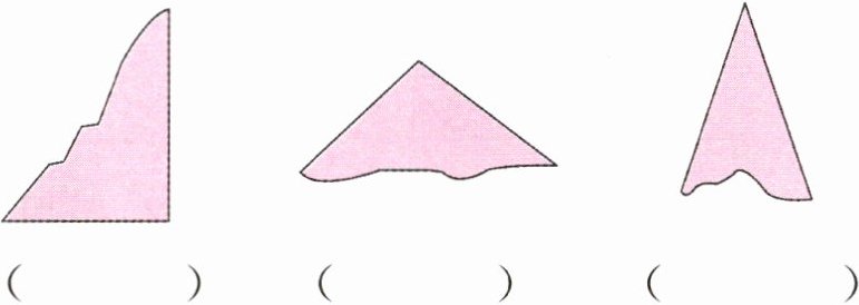 4. 下面均是被损坏了的三角形木板,猜一猜它们分别是哪一类三角形。