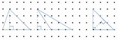 3. 在下面的点子图中画一个锐角三角形、一个钝角三角形和一个等腰直角三角形(顶点都在点子上),并给每个三角形画上一条高。