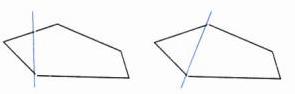 5. 照样子,用直线截一截下面的五边形,使得到的新多边形满足对应的条件。