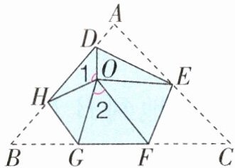 2. 如图,将三角形 ABC 的三个角分别沿 DE、HG、EF 翻折,三个顶点均落在点 O 处。