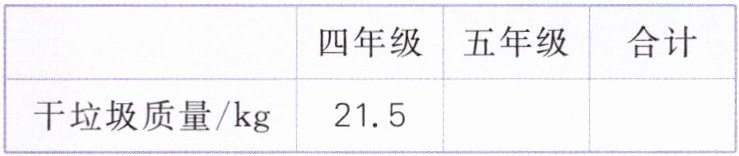 4 在“垃圾分类”活动中,四年级同学收集的干垃圾的质量比五年级同学收集的干垃圾的质量多1.8 kg。把下面的表格补充完整。