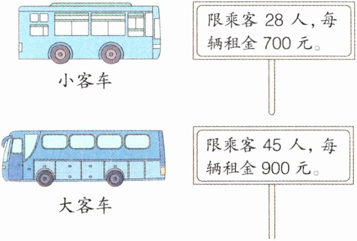 $900\div45 = 20$(元)@@$700\div28 = 25$(元)@@大客车@@34@@7@@2@@没有@@$7\times900 + 2\times700 = 7700$(元)