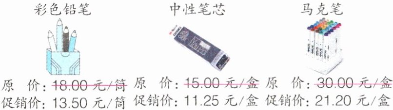 1. 23.88 + 4.65 = 28.53(元) 28.53 < 58 28.53 + 10 = 38.53(元) 答:店家不能包邮,李老师一共要花 38.53 元。 2. 58 - 28.53 = 29.47(元) 13.5 + 11.25 = 24.75(元) 24.75 < 29.47 13.5 + 21.2 = 34.7(元) 34.7 > 29.47 11.25 + 21.2 = 32.45(元) 32.45 > 29.47 答:建议李老师再购买一筒彩色铅笔和一盒马克笔或一盒中性笔芯和一盒马克笔。