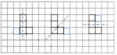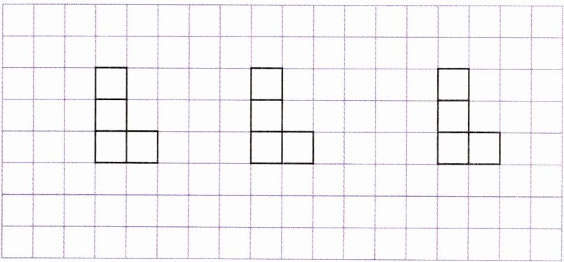 5 请你用三种不同的方法分别在下面图形上加一个正方形,使它成为一个轴对称图形,并画出对称轴。