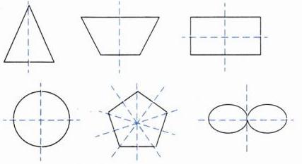 2 下面图形分别有几条对称轴?画一画,填一填。
