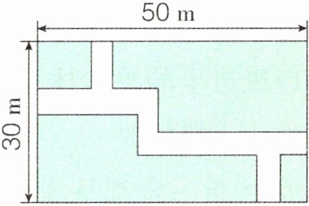 2. 如图,在长50 m、宽30 m的长方形土地上,有纵横交错的小路,宽均为2 m。除小路外,其余部分均种植花草,则种植花草的面积是多少平方米?