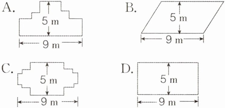 5. 王叔叔想用一条28 m长的栅栏围成一个花圃。他设计了下面四种方案,其中方案( )不可以顺利围出来。