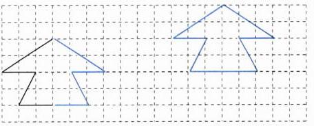 1. 先根据对称轴补全下面这个轴对称图形;再画出这个轴对称图形先向右平移10格,再向上平移2格后的图形。
