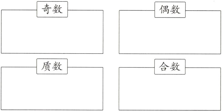 (1)仿照样子,在材料上圈出各数的组成部分哪些是5的倍数。