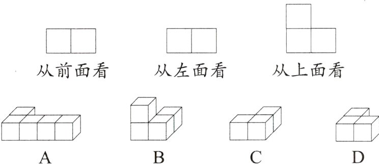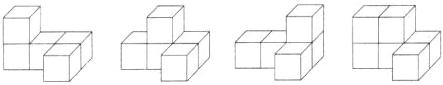 可知,几何体前面一行由一层小正方体摆成,后面一行由两层小正方体摆成。因此,摆成的几何体可能是下面几种情况。