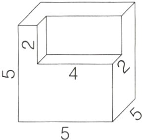 表面积:5×5×6 = 150(cm²) 体积:5×5×5 - 4×2×2 = 109(cm³)