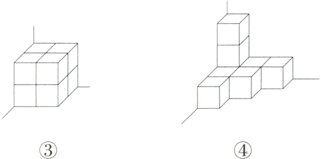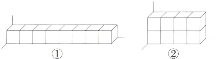 2. 某公司买了8箱同样的纸张,箱子的棱长是1m,要摆放在仓库里。小青设计了如下沿墙角摆放的方法: