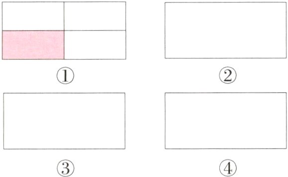 6. 有一块长方形花坛,现在要划出它的$\frac{1}{4}$来种玫瑰花,图①是一种设计方案,你能设计出其他的方案吗?画一画,涂一涂。