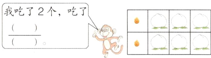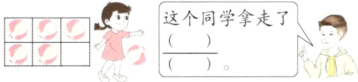 5. 右图中露出的苹果是单位“1”的$\frac{1}{5}$,被遮住的部分是单位“1”的( ),单位“1”一共有( )个苹果。