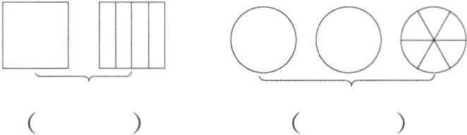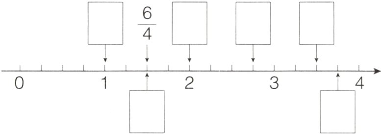 4. 在直线上面的 里填上假分数,下面的 里填上带分数。