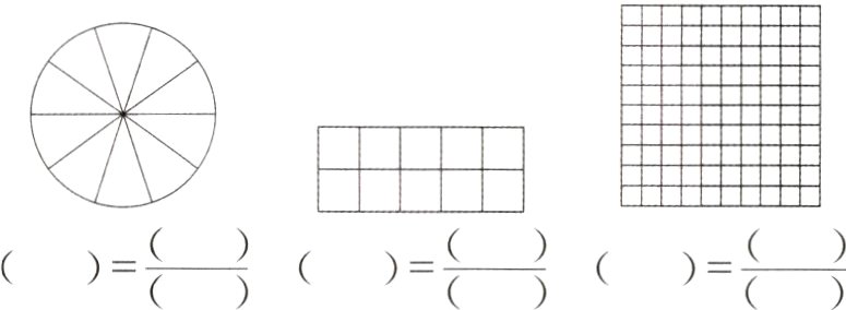 1. 分别用小数和分数表示下面每个图中的涂色部分。