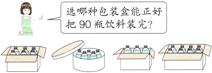 可以选择四种包装盒中的3瓶装、5瓶装或6瓶装。理由:90 = 3×30 = 5×18 = 6×15。
