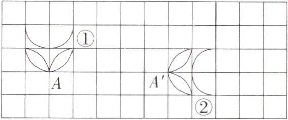 (1)将图形①先绕点A按照( )时针方向旋转( )°,再向右平移( )格,可以得到图形②。