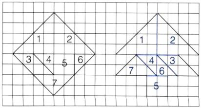3. 请你在“树”图中画出相应的每块七巧板的轮廓线,标出序号,同时说明每块板是怎样平移或旋转的。