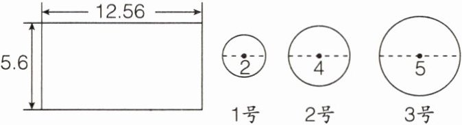 3 小明家有一块长方形铁皮(如图),爸爸想利用这块铁皮做一个圆柱形的桶。为了不浪费铁皮,他应选择几号圆形铁皮做底面?为什么?(单位:dm)