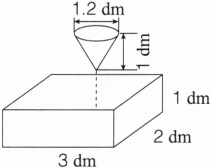 4 沙漏是古人用的一种计时仪器。如下图这个沙漏里(装满沙子)的沙子一点点漏入下面空着的长方体木盒中,若沙子漏完了,均匀地铺在盒子中,那么在长方体木盒中会铺上大约多少厘米高的沙子呢?(结果保留两位小数)
